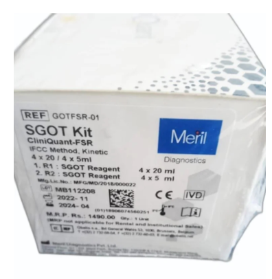 The AGD SGOT Kit is a precise and reliable diagnostic tool designed for the quantification of Serum Glutamic-Oxaloacetic Transaminase (SGOT), also known as Aspartate Aminotransferase (AST), in human serum. This kit is developed with advanced enzymatic technology, ensuring high sensitivity and specificity for accurate detection of SGOT levels, which are critical in assessing liver function and diagnosing liver diseases. With a reagent volume of 4x25ml, this kit is suitable for multiple test runs, providing consistent results across varied sample sizes.
