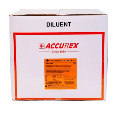 Accurex CBC 360 Neo (RFID) Diluent is a system-specific reagent formulated for use with the Accurex CBC 360 Neo RFID hematology analyzer. It is used for accurate dilution of blood samples prior to hematology testing, ensuring precise cell counting, sizing, and flow cytometry analysis.