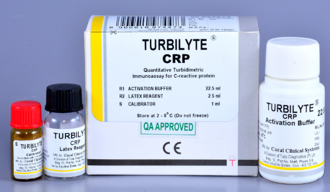 TURBILYTE®-CRP Latex reagent (R2): Ready to use uniform suspension of polystyrene latex particles coated with anti-CRP antibody.